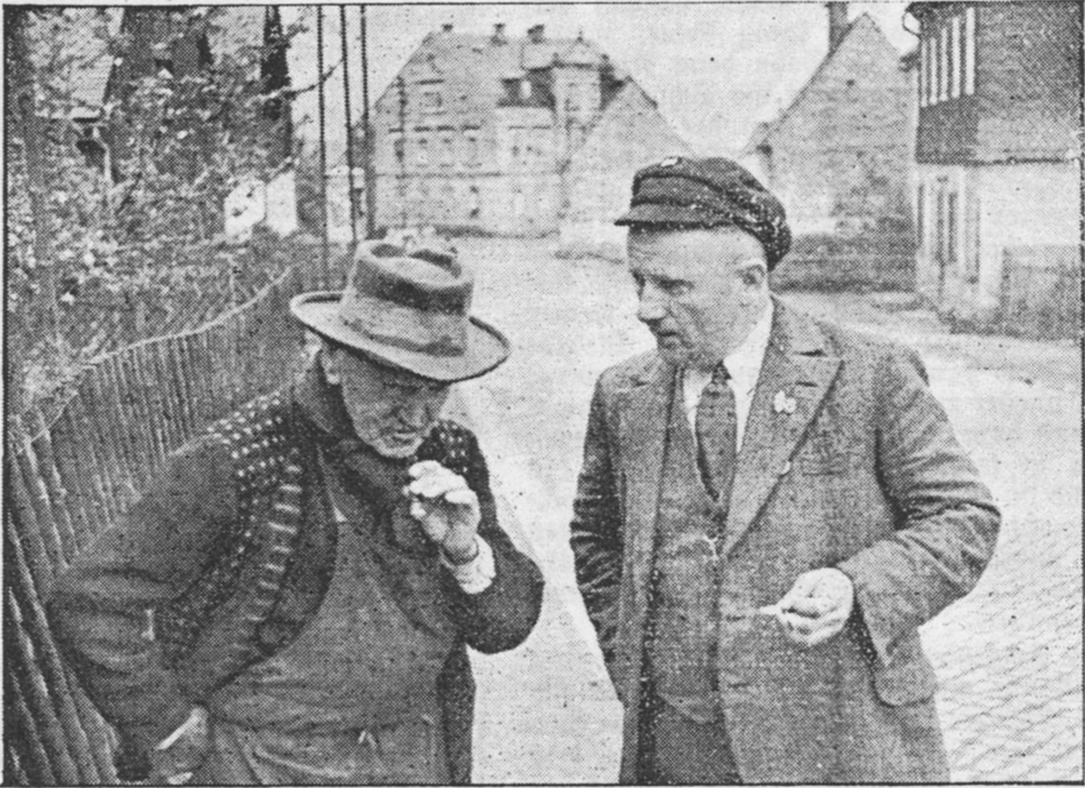 Allein, die Erfolge lagen nicht nur auf diesem Gebiete. Gleichzeitig wurde damit ein wertvolles Stück Heimatarbeit geleistet. Interessiert nahmen die Sänger jede sich bietende Gelegenheit wahr, um zu den Einwohnern des Ortes selbst in engere Beziehung zu treten und so Land und Leute näher kennen zu lernen. Was nahm es Wunder, wenn man sich dabei an einen der wahrscheinlich ältesten Einwohner des Ortes wendete, um sich aus der Vergangenheit des Ortes Gelenau, von seiner Einwohnerzahl und dem Leben und Treiben der Erzgebirgler, von der industriellen Entwicklung des Ortes berichten ließ. Das Lichtbild gibt Kunde davon, wie ein alter, ehrwürdiger Erzgebirgler, ein Kind der Heimat, davon erzählt, wie die Strumpfindustrie ihren Anfang und ihren Aufschwung in der Vergangenheit bis in die Gegenwart hinein nahm. Er führte in seiner Erzählung in die Zeit zurück, als man noch die Fertigwaren mit dem sogenannten Schiebbock bis nach Chemnitz brachte, und wie das nun heute in der Zeit der Technik und des modernen Verkehrs alles so leicht und einfach sei. Sichtlich erfreut berichtet er davon, daß nunmehr auch der Beschäftigungsgrad wieder ein besserer geworden sei, als dies noch vor Jahren der Fall war.