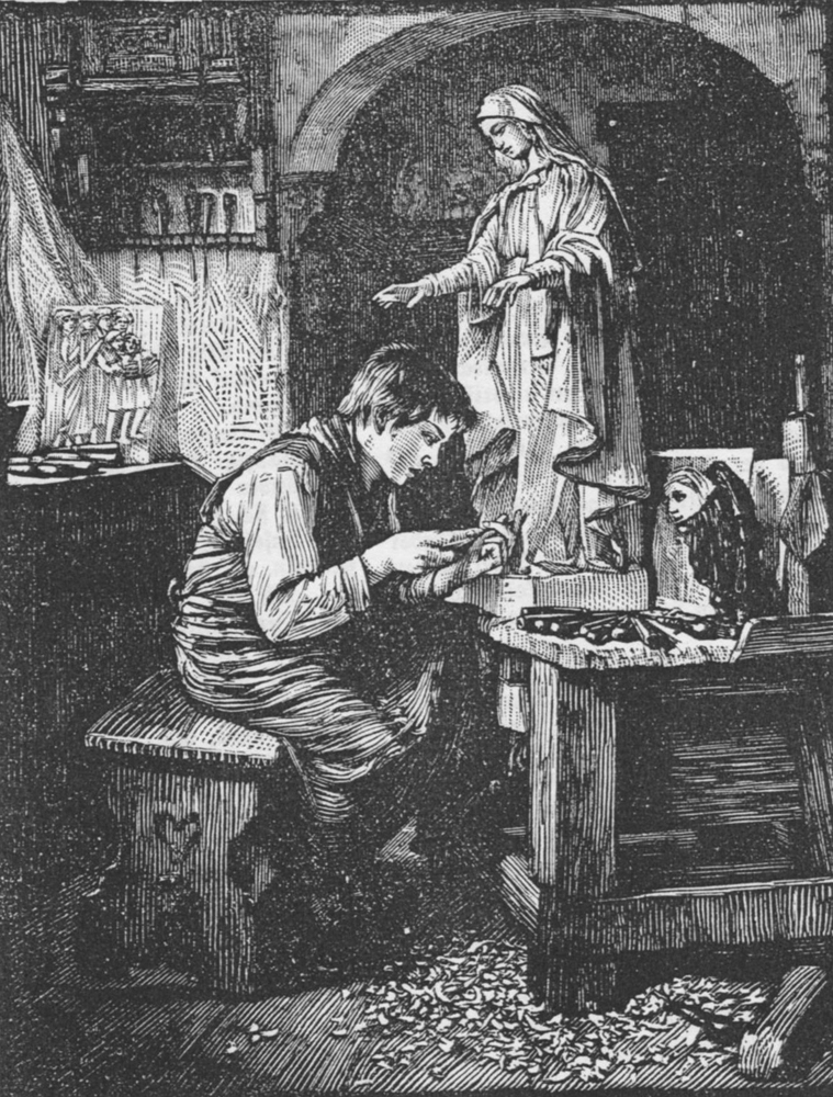 Willst Du, freundlicher Leser, einen Einblick gewinnen in diese Zurüstungen, so betritt mit mir das Stübchen eines schlichten Bergmanns. Ihm gilt es denn vor allem, den geschnitzten, großen Engel, der am Feste mit seinen zahlreichen Dillen das bescheidene Stübchen weihnachtshell erleuchten soll, neu aufzuputzen; denn sein so rosig dreinschauendes Antlitz ist rußgeschwärzt, das Flittergold seiner Flügel verwischt, und, vielleicht leidet er gar an dem oder jenem körperlichen Gebrechen. Aber auch der stattliche, gleichfalls holzgeschnitzte „Bergmann“, gewöhnlich ein Steiger, vielleicht des Vaters wohlgetroffenes Conterfei, bedarf einer gründlichen Erneuerung: in seine Rechte bekommt er ein buntbemaltes Licht; sein Kittel, das Lederzeug, seine ganze Montur, wird standesgemäß hergestellt und der Fels, auf dem er steht, reich mit gehämmertem, silberblinkendem Bleiglanz bestreut. Endlich geht´s auch an die Instandsetzung des Drehleuchters, der „Peremett“, welcher der Familie höchster Stolz ist; die oben horizontal befestigten Windmühlenflügel, welche vermöge der Lichtwärme die an der Achse befestigten Scheiben in kreisförmige Bewegung versetzen, müssen durch neue ersetzt werden; auf den Scheiben selbst, wo es sonst von allerlei zahmem und wildem Getier wimmelt, hat der Zeiten Flug arge Verwüstungen angerichtet: darum muß dieses in Wahrheit verlorene „Paradies“ – so heißt ein derartiger Tiergarten – aufs neue eingerichtet werden, um am heiligen Feste selbst durch den friedlichen Verkehr zahmer und wilder Tiere die Weihnachtsbotschaft: Friede auf Erden! predigen zu können. Zu all diesen wichtigen Arbeiten erklingen die alten und doch ewig neuen, nie ausgesungenen Weihnachtslieder, bei deren Weisen sich auch des Ärmsten eine festliche Stimmung bemächtigt.